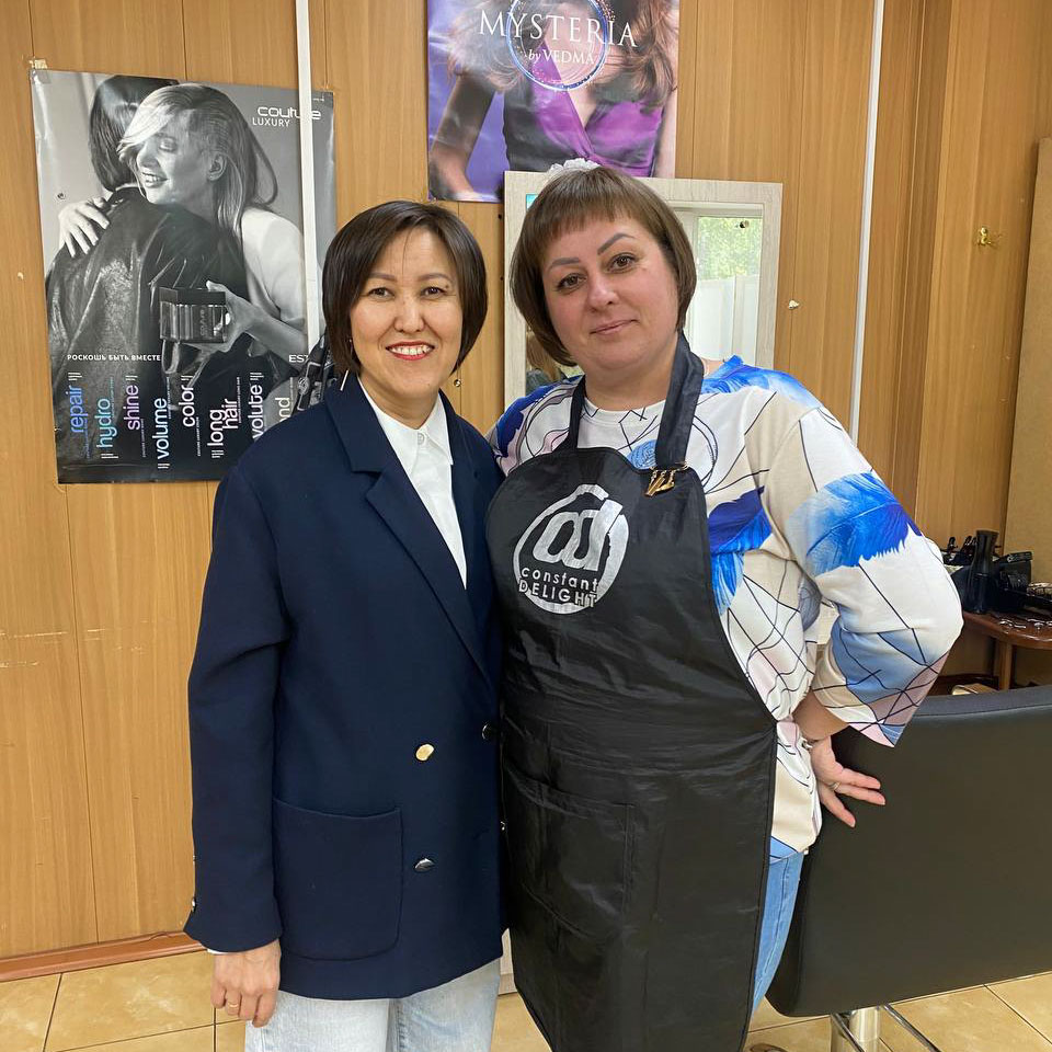 А это Катя. Она проходила обучение и стажировку в нашем учебном центре, а сейчас работает в нашей сети парикмахерских «Матрица».